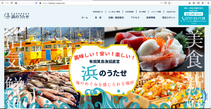 年末から翻訳担当していた、有田市箕島漁協の直営施設「浜のうたせ」様の英文ページが完成しました。(制作:エヌドットデザイン様)