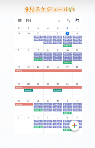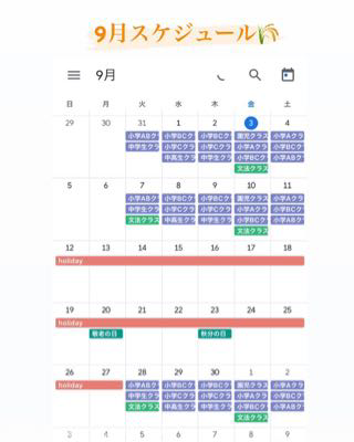 9月のスケジュールとお休み中の宿題についてお知らせです。